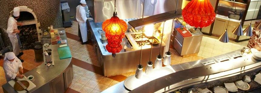 The artistic flavours of Italy come to life at Prego. Guests can enjoy a lively show kitchen while feasting on rustic home style Italian favourites, including gourmet wood fired pizzas and homemade pasta in a relaxed and casual setting.